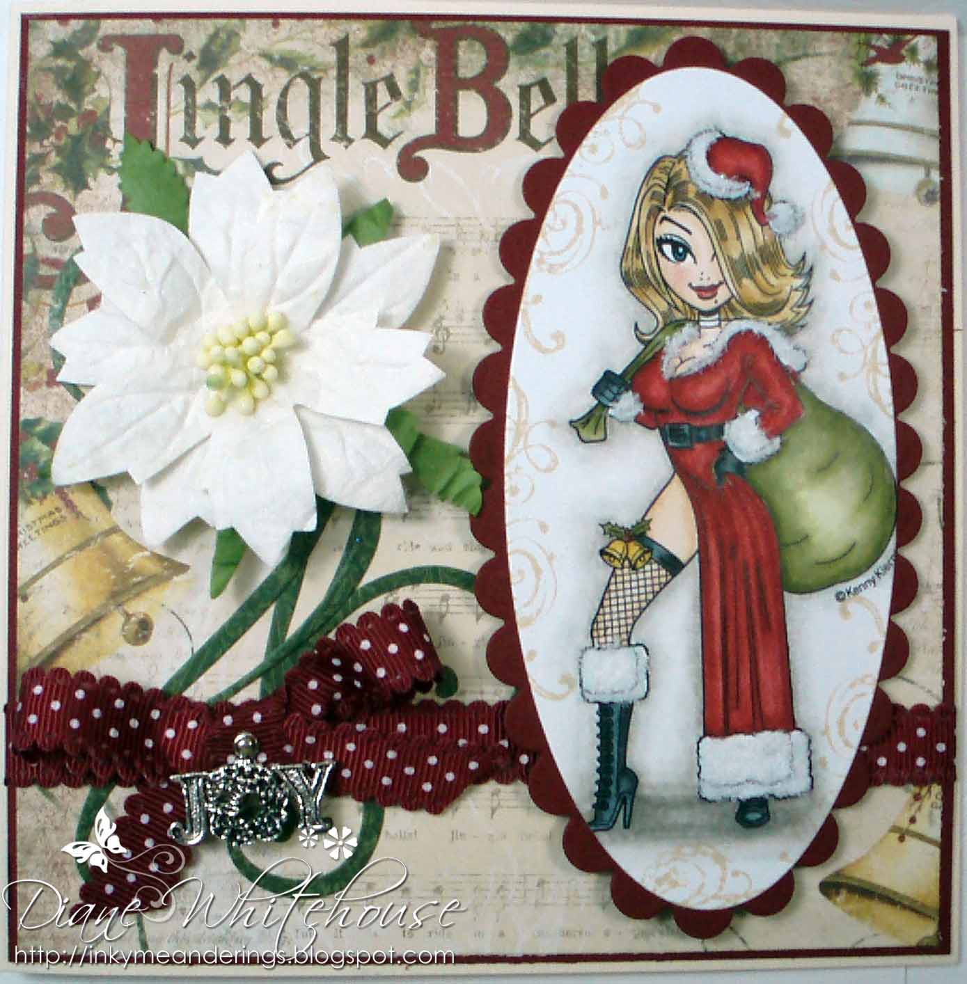 Dippy Toe Lady set, I knew I wanted to have the effect of the lady in a leafy glade at sunset then, having created the sunset, I was trying out all the colours of card to mount the image when I suddenly realised that I'd used all the colours of the Mardigras background -I am slow sometimes! Good thing that I'd created a whole A4 sheet wasn't it? Here's the result: